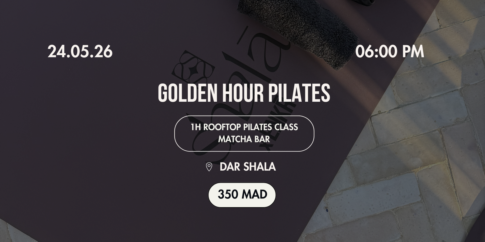 End your day with a sunset Pilates session in the heart of the Medina. Join us on May 24th at